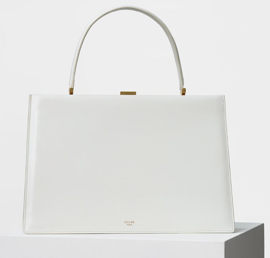 Celine 赛琳 CLASP中号白色亮泽小牛皮手袋