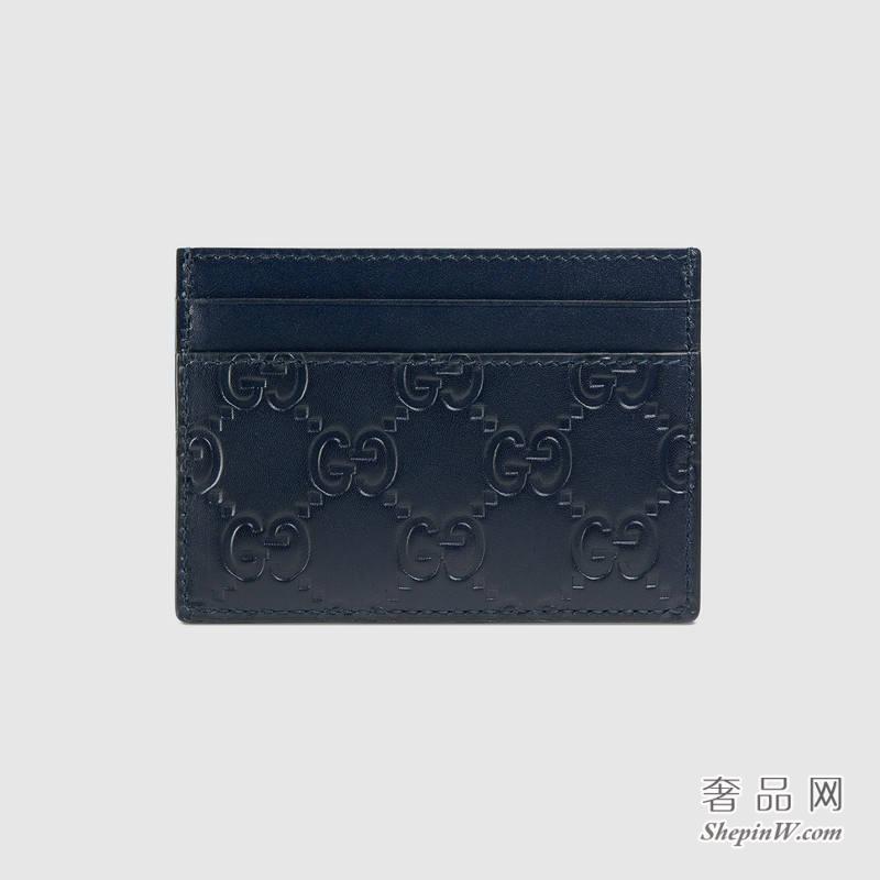 卡片夹采用热压印技术的Gucci Signature真皮精制而成,触感厚实,印花图案清晰分明。边角采用金属GG细节,反射Gucci Signature真皮图案。