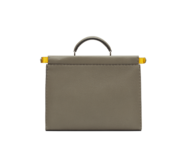 芬迪Fendi PEEKABOO FIT 碳灰色及向日葵黄色罗马皮革柔软手提包