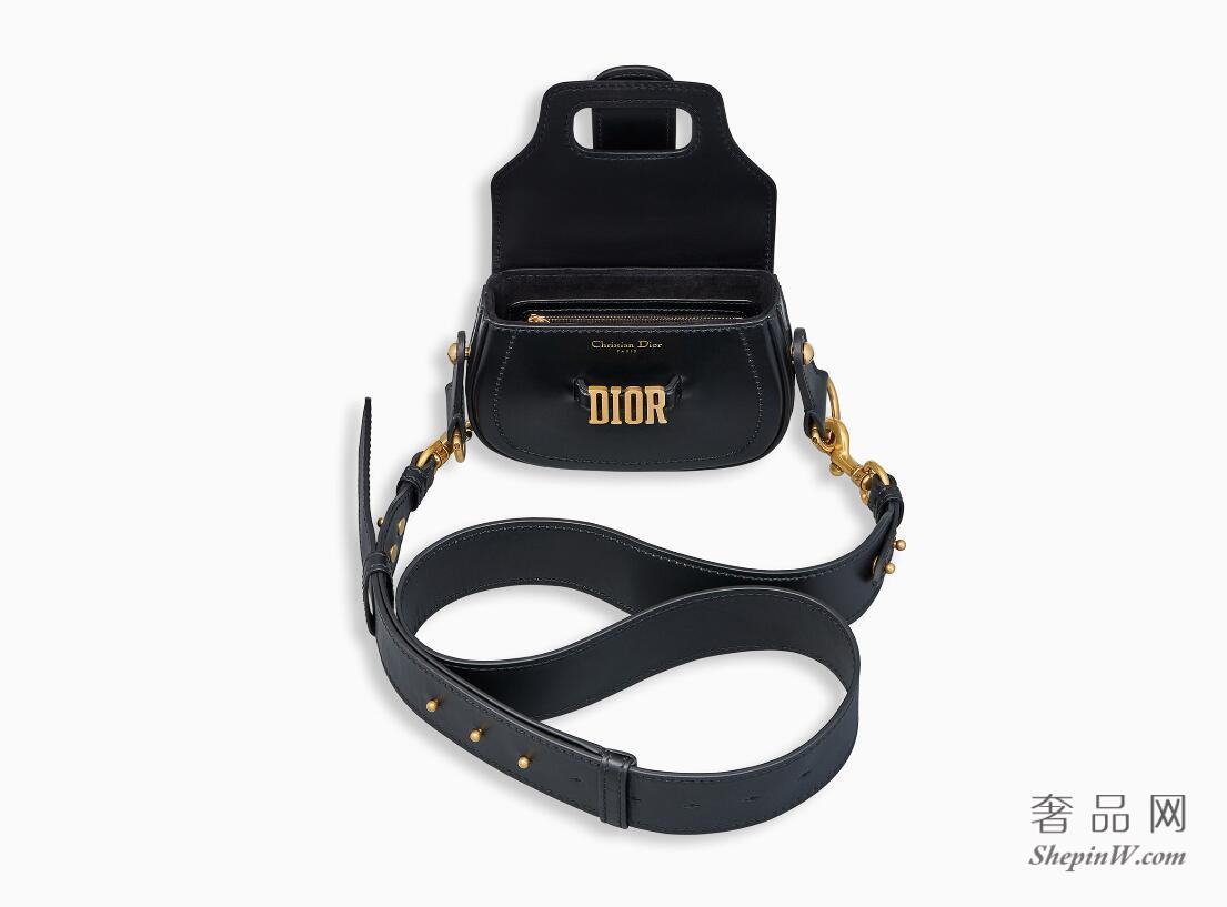 迪奥Dior D-Fence黑色小牛皮袖珍斜挎包,搭配复古金色金属Dior锁扣。