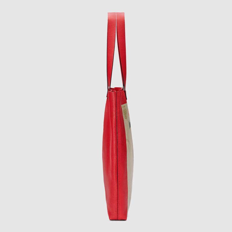 古驰Gucci 芙蓉红皮革 Elton John印花大号购物袋519335 0LDD0 6072
