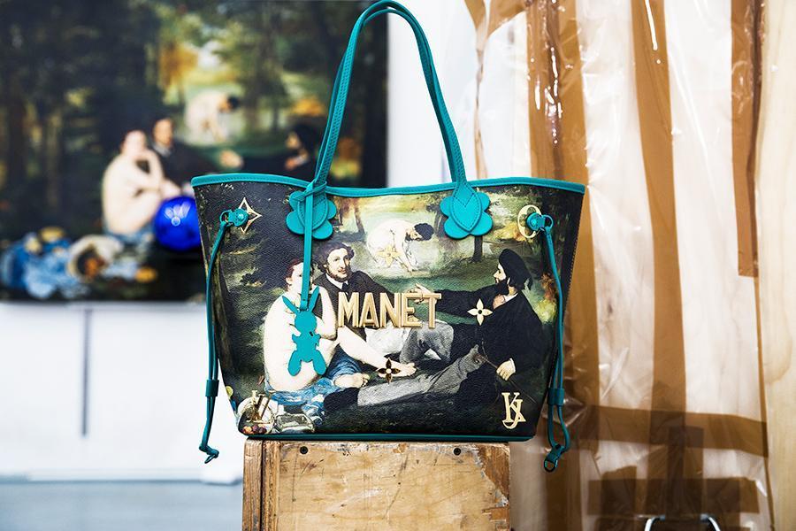 而在这一季,Jeff Koons 选择的画作包括了弗朗索瓦·布歇的《躺在沙发上的少女》、保罗·高更的《愉悦的土地》、爱德华·马奈的《草地上的午餐》、克劳德·莫奈的《睡莲》、尼古拉斯·普桑的《潘神的胜利》以及威廉·透纳的《古罗马》。其中《潘神的胜利》只限于刚开业的 LV 芳登广场旗舰店独家发售。