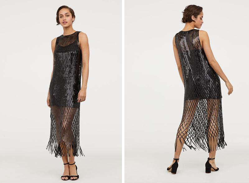 虽然只有 4 款单品,但价格跨度倒还很大,最便宜的是黑色亮片网纱连衣裙为 599 元,最贵的金色流苏水钻连衣短裙则为 3990 元,主要就是面料、工艺的复杂程度有差别。最贵的这款礼服重量扎扎实实达到了 3.2 公斤,整件礼服都是水钻装饰,不对称流苏下摆以及从肩部垂下的流苏装饰都是相当精致了。