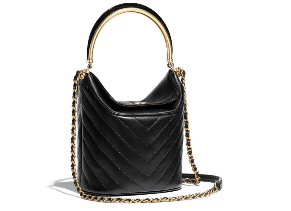 香奈儿Chanel 黑色 V型羊皮革 水桶包金色金属