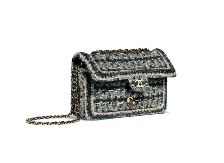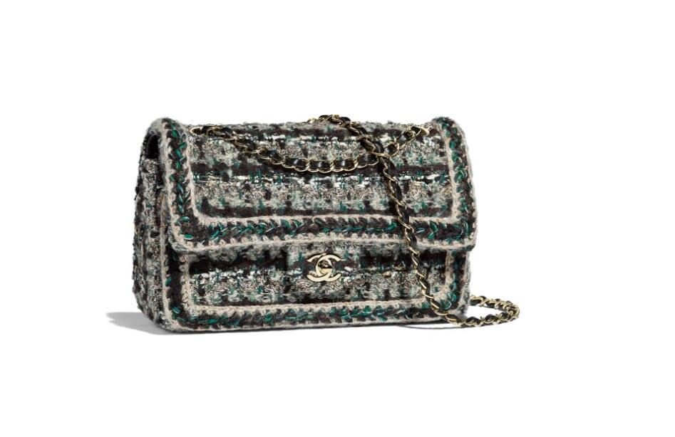 香奈儿Chanel 金色黑色 绿与白色 斜纹软呢 编结口盖包