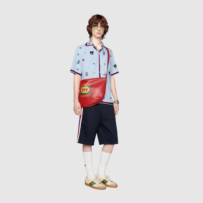 作为2018早秋的全新款型,半月形包借鉴了50年代末流行的Gucci圆底包独特的设计风格,并将街头元素与之结合。以带有纹路的柔软皮革制作,包身饰有Gucci标识,这是一种从80年代复古印花取材的复古图案。