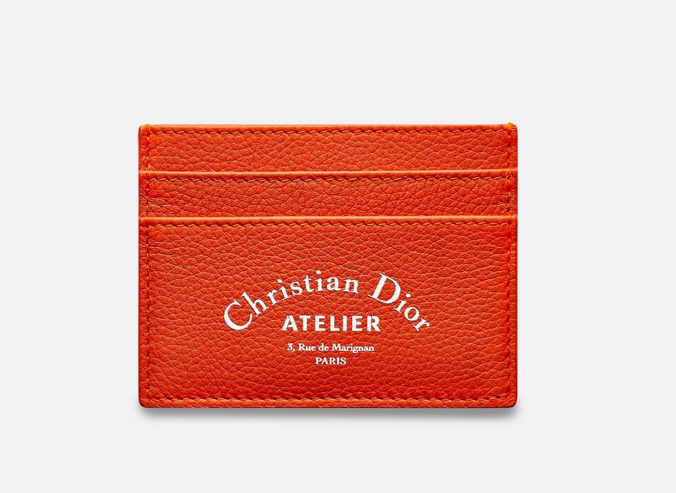 橘色粒面触感小牛皮和“Christian Dior Atelier”印花卡套。