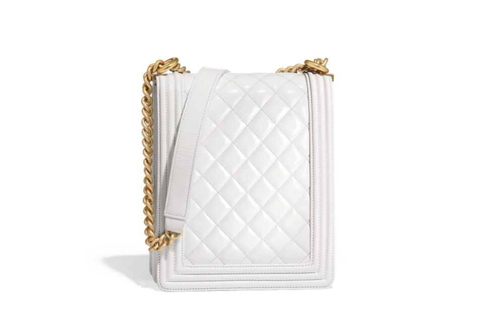 香奈儿 2018 BOY CHANEL口盖包白色小牛漆皮与金色金属