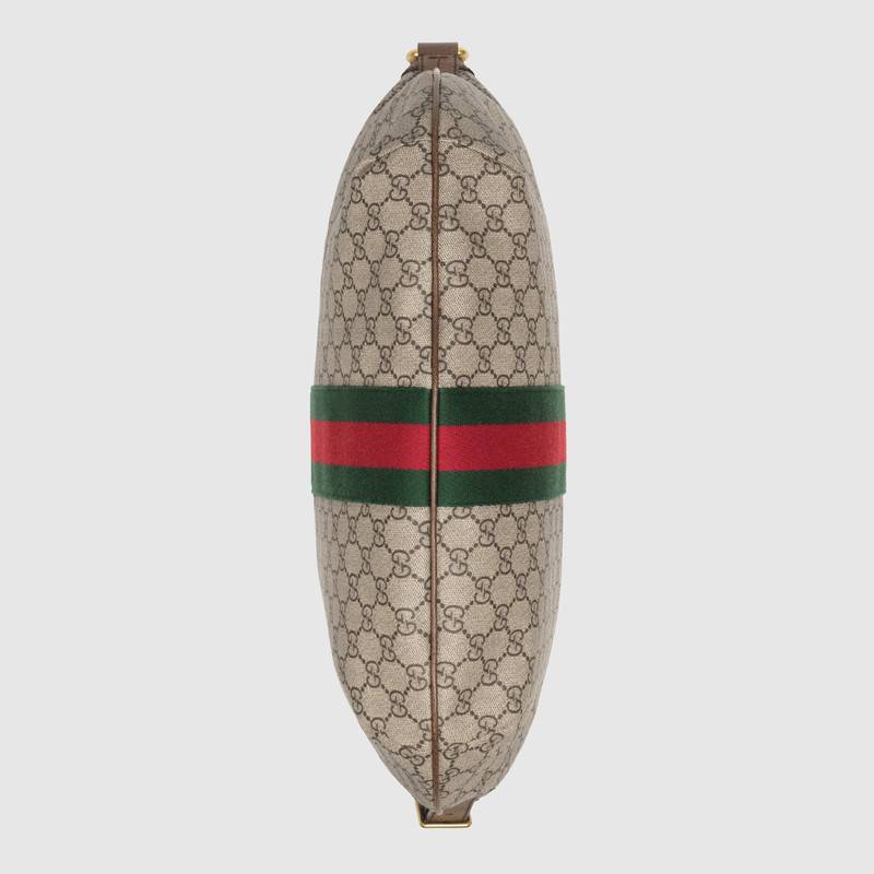 GG图案和条纹织带这两种品牌颇有辨识性的元素融合成经典搭配,Ophidia世界的演化之路从未止息,加入别出心裁的款式造型,不断推陈出新。这款半月形手袋借鉴了50年代末流行的Gucci圆底包别致的设计风格,并将经典元素与之结合。采用GG Supreme高级人造帆布制成,织纹皮革滚边,顶端点缀双G配件。