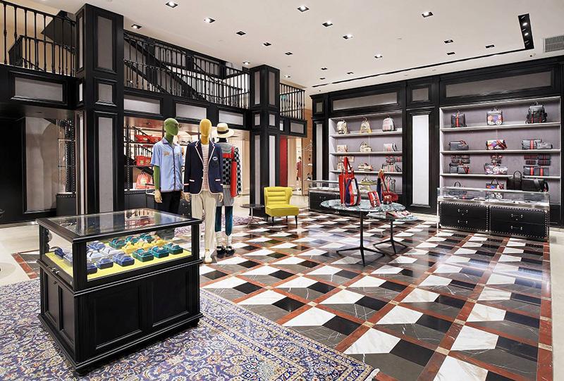 值得一提的还有单独的童装区域,有淡绿色地毯搭配蓝白条纹与黄白小格纹壁纸,还有迷你版的动物面孔人形模特这样的“神秘同伴”——在开幕活动现场,这也是被合影最多的元素之一。此外 Gucci Décor 家饰系列的集体亮相也是店内抓眼球的部分。