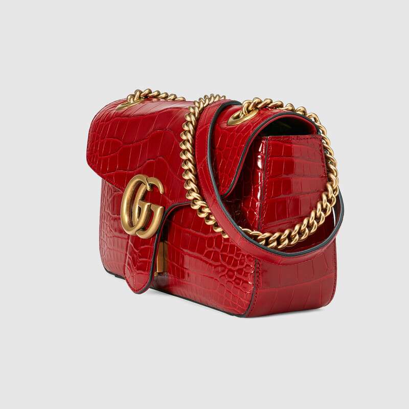 古驰女包官方网站 gucci GG Marmont系列鳄鱼皮小号肩背包
