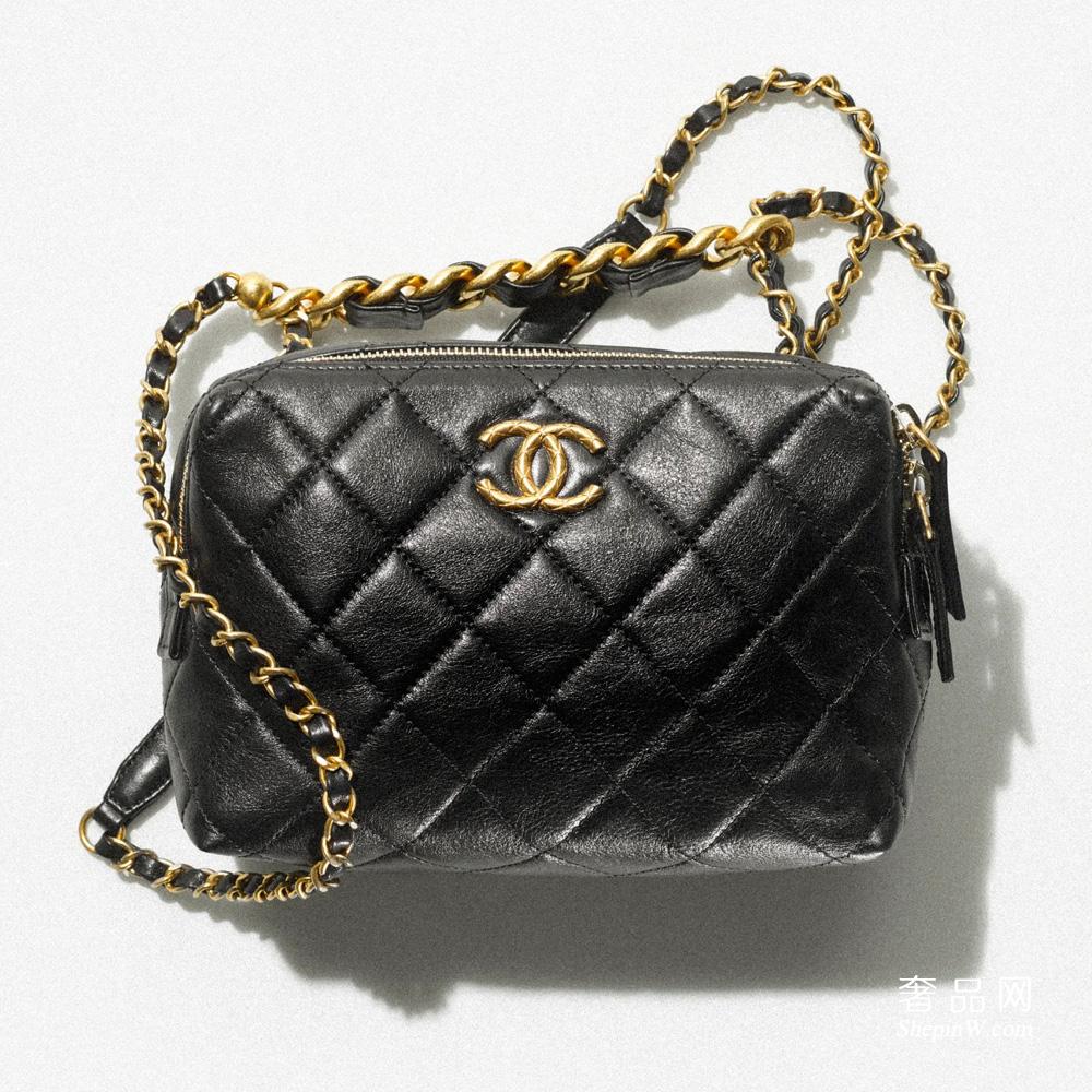 香奈儿官网2022新款包 迷你保龄球包 小牛皮与金色金属 黑色