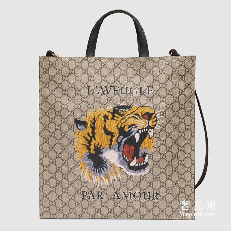 喜欢文章就转载它啦:奢品网包包腕表之家 » Gucci 老虎印花柔软GG高级人造革购物袋450950 K581T 8666